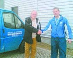 På billedet takker ungdomsformanden Per Mogensen, Stenvad Boldklub, Mogens Skriver Rasmussen for støtten.