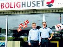 På herstående foto ses indehaveren af et helt nyt bolighus i Grenaa, den 39-årige Sten Petersen, sammen med sælgeren Thomas Brink. Navnet på stedet er Bolighuset Grenaa, og adressen er Trekanten 10 i Grenaa, der i mange år efterhånden har fungeret som netop møbel- og tæppe/gulvforretning.