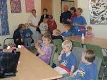 Udstillerne er dagplejebørnene tilknyttet dagplejerne fra Onsdagsgruppen i Trustrup. Formanden for Børne- og Ungdomsudvalget i Grenaa Kommune, Valdemar Haumand, stod for åbningen af udstillingen, hvorefter Kim Landsholt fra Dagplejekontoret på Grenaa Rådhus fortalte noget om, hvordan udstillingen er blevet stablet på benene.