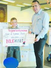Vinderen er fundet, og han ses på herstående foto sammen med indehaveren af Bolighuset Grenaa, Sten Petersen. Der er tale om den 8-årige Uffe Olesen, der har tegnet et smukt spisestue-møblement. Og opgaven lød på at tegne et møbel - eller et møblement – efter eget valg. Og Uffe var altså den, der var mest ferm med farvekridtene og er derfor løbet af med et gavekort til en værdi af 500 kroner.