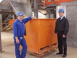 Novopan Træindustri A/S, som siden 1950 har produceret spånplader, har oplevet nogle økonomisk magre og omkostningstunge år. Men nu er der lys forude, lover Novopans direktør Henning Jensen (th). Her sammen med driftsleder Carl Henrik Behrens.