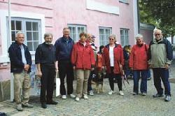 På billedet ses Ole Olesen med sit selskab, ledsaget af en anden frivillig guide, fhv. skoleinspektør Niels Olsen.