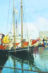 Skonnerten Martha, der sank i hårdt vejr mellem Grenaa og Anholt i forrige uge, er nu kommet på bedding i Grenaa Havn. Her ses skonnerten umiddelbart inden den blev løftet på land af kæmpekranen Samson.