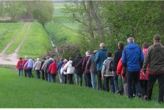 Kirkevandring, pilgrimsvandring eller bare en vandretur i hyggeligt selskab ? - "Kært barn har mange navne", men det bliver i alt fald en oplevelse for både krop og sjæl. Sidste års vandring gik over markerne til Vejlby Kirke. - I år er der også lagt en lille bustur ind, idet kirkebilen henter deltagerne ved kirkens våbenhus kl. 18.00, og kører til banestien i Allingåbro, hvor man fortsætter til fods ca. 4 km ad den naturskønne banesti til Auning Kirke.
