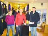 I den forbindelse havde Marcus en udstilling inde i butikken med et veldækket bord og et par »smarte fyre«. Man skulle bare udfylde en seddel med navn, adresse og alder med videre, så deltog man i konkurrencen. Vinderen af konkurrencen blev Michael Jensen, Skovsvinget 15 i Grenaa. På billedet ses han yderst til højre. I midten er det Kim Bank fra Marcus i Grenaa, mens man til venstre ser Michaels søn, Tobias.