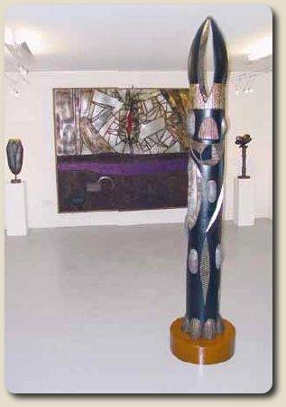 Fabiola Buritica fra Panama udstiller figurative og ekspressionistiske oliemalerier i stærke farver og brede sorte konturer. Motiverne kredser om kvinden og forskellige dyr. Ligeledes fra Panama kommer den anden udstillende kunstmaler, nemlig Efraim Espino, der udstiller abstrakte kompositioner i varme ulmende farver. Bettina Winkelmann fra Tyskland udstiller lette og fine lyriske billedkompositioner med genkendelige fragmenter som krukker og lignende. Det lokale er på udstillingen repræsenteret af den århusianske billedkunstner Henrik Juhl Andersen, der udstiller nyromantiske landskabsmalerier plus billedhuggeren Ingolf Steffensen, der viser sine seneste jernskulpturer. Udstillingen er åben resten af sommeren og kan beses onsdag fra 17-21 og søndag fra 13-17 eller efter aftale.