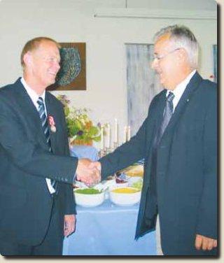 Borgmester J.P. Jellesen overrækker dronningens fortjenstmedalje.