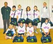 På billedet ses Benny Hammer sammen med pigerne og deres træner.