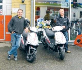Erik Thomsen og Jens Svendsen (billedet) vandt auktionen på Sym-scooterne i forbindelse med Davai Cykel- og Marinecenters påske-aktivitetsdage.