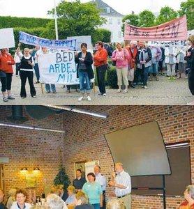 Det strejkende plejepersonale blev modtaget af borgmester Torben Jensen og direktør for ældreområdet Kenneth Koed Nielsen. De strejkende sang slagsange og talskvinde Inge Andersen afleverede protestskrivelse til borgmesteren, der til gengæld bød på kaffe i kantinen. Her takkede borgmesteren for besøget, og havde forståelse for plejepersonalets krav om mere i løn, og forbedringer af arbejdsforholdene.