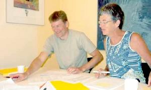 Forstander Lars Østergaard og afdelingsleder Inge Marie Jakobsen optaget af at gennemlæse den store stak jobansøgninger.