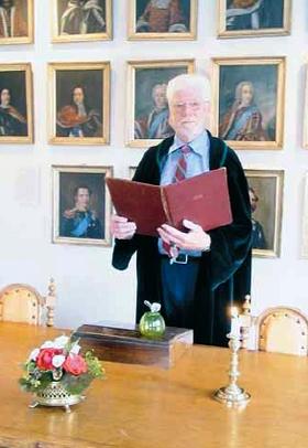 - I forvejen var jeg godt kendt med proceduen ved de borgerlige vielser, idet jeg talrige gange har været vidne ved bryllupper på rådhuset. Når giftefogeden manglede et vidne, blev jeg som regel hentet ind fra mit job som kustode på stedet, fortæller Erik Egholm.