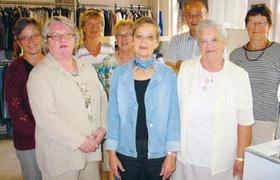Her ses en stor del af de frivillige bag Folkekirkens Nødhjælps Genbrugsbutik i Østergade i Grenaa. Butikken kan i næste uge fejre 20 års fødselsdag, og det bliver markeret med et stort fødselsdagssalg med 50% rabat på alle varer.
