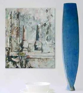 Palladio og Piranesi var to store italienske arkitekter, den første født i 1508 og skaber af den klassiske villa, den sidste fra 1700-tallet, berømt for sine arkitekturfantasier. De har foruden inspirationen til den grafiske udsmykning af keramikken ogsÃ¥ været udgangspunkt for flere malerier, Morten Skovmand viser pÃ¥ udstillingen, bl.a. en serie oliebilleder »Palladio-drøm« og en stor fantasi i olie over Piranesis Carceri d’Invenzione.