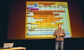 Kenneth Vandels foredrag omhandlede hvad der skal til for at begå sig indenfor 3D branchen som animator. Han tog udgangspunkt i sin egen karriere, der strækker sig over store 3D virksomheder som Ghost, Deadline Games og ikke mindst A. Film. Sidstnævnte firma stod bag publikumssuccesen »Terkel i knibe«, og deres næste film er det tredje afsnit i føljetonen om jungledyret Hugo. Kenneth Vandel viste klip fra den kommende film og forklarede om de forskellige faser man skal igennem - både indenfor 3D filmbranchen og spilindustrien. Da foredraget var slut for de ca. 60 elever fra de to skoler var der mulighed for at stille spørgsmål til foredragsholderen.