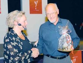 Den afgående formand for Grenaa Frivillige Bloddonorkorps, Jørn L. Madsen, får overrakt en Pelikan af sekretær Lene Fribo for 20 års arbejde for Bloddonorerne i Grenaa. Pelikanen er symbol for donorsagen, da det siges, at den plukker sit bryst til blods for at ungerne ikke skal tørste.