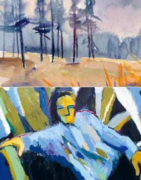 Arne Tipsmark viser for sin del landskabsmotiver inspireret af den djurslandske natur. Udstillingen er åben alle dage i påsken.