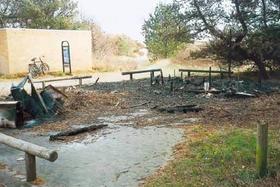 Det øde beliggende ishus på Katholm Strandvej ved Grenaa Strand er blevet ødelagt ved en brand.