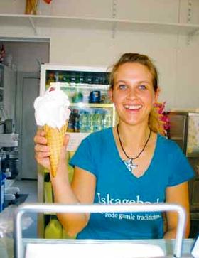 – Det gør jeg ganske enkelt fordi de laver det bedste is pÃ¥ markedet. Det er virkelig noget, der smager af noget, fordi de putter rigtig fløde i deres is, og det gør altsÃ¥ en forskel, siger Berit Lanther, der ovenikøbet ganske gratis putter hjemmelavet guf, syltetøj og flødeskum ovenpÃ¥ isvaflerne.