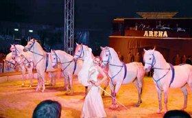 Cirkus Arena og dyr hænger ubrydeligt sammen. I vinterkvarteret i Slagelse er der arbejdet målrettet med at træne de mange dyr, og herfra præsenteres en klassisk smuk og overraskende frihedsdressur med otte hvide araberhingste. Elefanternes optræden er igen i år lagt i hænderne på Familien Caselly, der i januar 2008 har vundet den fornemme pris »Sølvklovnen« ved Cirkusfestivalen i Monaco.