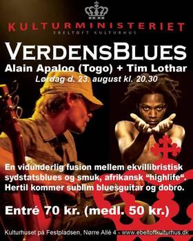 Alain Apaloo kommer fra Togo i Afrika, og har boet i Danmark i 8 Ã¥r. Alain skriver sine egen sange og synger pÃ¥ engelsk i en vidunderlig fusion mellem ekvillibristisk sydstatsblues og smuk, afrikansk “ highlife “. Hertil kommer sublimt bluesakkompagnement pÃ¥ guitar og dobro.