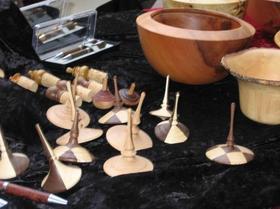 De fine snurretoppe er næsten for flotte til at lege med. Mange husflidsarbejder er rene kunstværker, som det ses her.