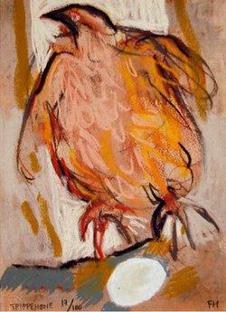 Malerierne forestiller sære, sjove, groteske væsner i tegneserieform - ikke ulig dem, som Trier selv har fremstillet på scenen.