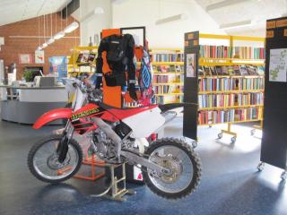 I hele juni kan man se udstyr og crossere udstillet på Ørsted Bibliotek og selvfølgelig også låne bøger med hjem om emnet. Det er Rougsø Cross Klub der har sammensat udstillingen.