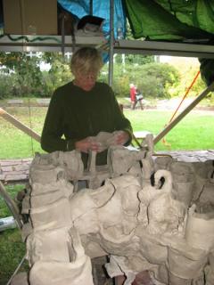 Elefanter blandt buskene og fade og kopper under æbletræerne er noget af det man kan se i keramiker Jørgen Hansen sommerudstilling i værksted og have.