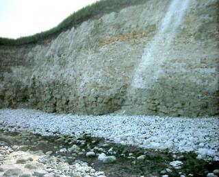Lag af Bryozokalk fra Nedre Danien i Karlby Klint.