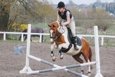 Gerne en ride- eller cykelhjelm, (men det er også muligt at låne en godkendt ridehjelm på rideskolen).