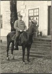 Margarinekongen Otto Mønsted er her fotograferet høj til hest foran Lyngsbækgård i 1838.