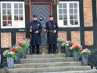 Vægtere foran det gamle rådhus i Ebeltoft.