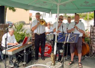 Et af landets mest efterspurgte og ældste jazzorkestre, Roayl Garden Jazzband, spiller på Torvet i Rønde. - Der er fri entré.