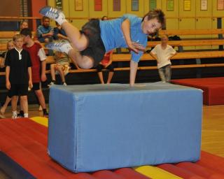 Vi har hyret Dimitri, som har parkour-hold i ungdomsskolen, til at lave noget for de lidt større børn (8 år op opefter), mens vores egne gymnastikinstruktører laver en bane for de mindre børn.