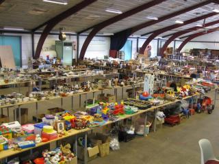 Det er FDF, der har indsamlet ”lopperne”, og Byhallens frivillige der har stÃ¥et for det store sorteringsarbejde. ”Det er, som var det juleaften, nÃ¥r vi pakker de store papkasser ud og begynder at grovsortere” lyder det fra udpakkeholdet. Vi er overvældet over alle de ”lopper”, der er indsamlet. Det kommer fuldstændig bag pÃ¥ os, at der er indkommet sÃ¥ mange effekter... Der er i Ã¥r ekstra meget legetøj, sÃ¥ boden er pÃ¥ størrelse med en bedre BR butik. Afdelingen for brugte bøger slÃ¥r alle rekorder i Ã¥r – det er helt vildt sÃ¥ mange og virkelig mange gode emner der er blandt bøgerne. Isenkram har udvidet salgsarealet for at skaffe plads til det store udvalg og særlig afdelingen for fine glas skinner i øjnene. Der er indsamlet mange møbler og særligt læder- og teakafdelingen er værd at gÃ¥ efter.
