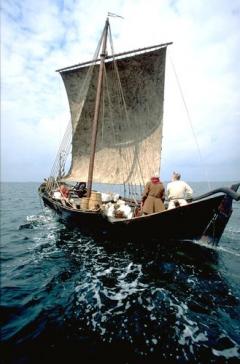 Det rekonstruerede middelalderskib der lægger til i Kalø Vig i weekenden.