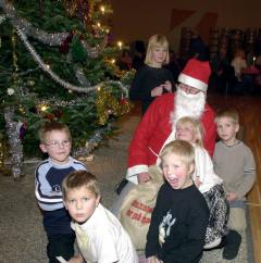 Julemanden kommer på besøg med godteposer til juletræsfesten.