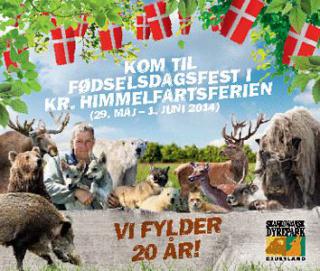 I 1994 slog Skandinavisk Dyrepark dørene op for første gang og dette fejres med en masse aktiviteter i Kr. Himmelfartsferien. Direktør og ejer af Skandinavisk Dyrepark, Frank Vigh-Larsen, fortæller om 20 år med parken og dyrene. Kom og hør alle de sjove anekdoter kl. 14.00 på tribunen ved Isbjørneparken. Og mød isbjørnemaskotten Svalle, når han går rundt i parken og deler bamse-slikkepinde ud til børnene. Til de voksne er der et gratis stykke kage ved køb af kaffe i Café Bjælkehuset. Prøv også den udfordrende jubilæumsquiz og gå på opdagelse i de mange vilde fødselsdagstilbud i souvenirbutikkerne.