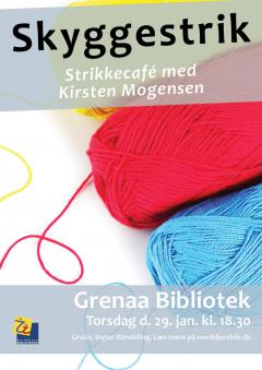 Der skal arbejdes med skyggestrik, som er en teknik, hvor man leger med ret- og vrangmasker og forskellige farver. Teknikken egner sig til næsten al beklædning, plaider, grydelapper mm. Medbring strikkepinde nr. 3 og eventuelt garnrester. Der kan som sædvanlig også købes garn. Enten strikker du en prøve eller et par håndledsvarmere. Kirsten Mogensen leder strikkecaféen.