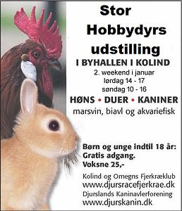 Hobbydyrs-udstilling i Byhallen lørdag og søndag d. 9+10/1. - Søndag fra kl. 10 til 16