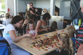 Lav dit eget lille kunstværk i glas. Byg dit eget billede op af små stykker farvet glas, som lægges på en gennemsigtig glasplade. Når motivet er færdigt, smeltes de farvede stykker fast på glaspladen og efter to dage kan du afhente det færdige billede. Lige til at sætte i vindueskarmen. Alle kan være med. Det er ikke nødvendigt at tilmelde sig på forhånd. Det koster 75 kr. + entré til museet.