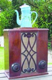 EMCO-radioen fra 1929 med tilhørende kaffekande kan nu ses på Djurslands Museums radioudstilling, efter at have været lånt ud til en særudstilling på El-Museet i Tange.