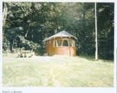 Nørre Djurs Egnsarkiv har bevaret dette billede af det gamle træfyr, som i mange år prydede dansepladsen i Gjerrild-skoven. Bygningen nedbærndte i 2003.