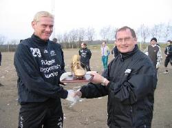 På billedet overrækker sportsreporter Leo Jacobsen på Amtsavisens vegne Den Gyldne Støvle til Flemming Nielsen