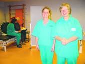 Lederen af Genoptræningsafdelingen på Hedebocentret, Annelise Valbak (t.h.) ses her sammen med fysioterapeut Anne Svane, mens ergoterapeut Malene Nordentoft arbejder med en borger i baggrunden.