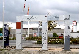 "Portalen” er det synlige re­sultat af et samarbejde mel­lem billedkunstneren Bente Bo og Grenaa Tekniske Sko­les Håndværkeruddannelser.