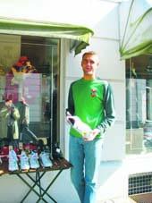 Således vil butikken stå for et kæmpe sko-marked ude på gaden foran butikken, og det er netop hvad Rasmus fra Sportsbutikken signalerer på dette billede.