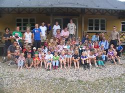Alle deltagere på lejren. 75 i alt med børn, ledere og lederbørn