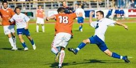 GIF Fodbolds DS-hold tabte i lørdags til Vejle Boldklubs 2. hold på en scoring i overtiden. Her forsøger Martin Andersen at tackle en af Vejle-spillerne. [Foto: CC Foto]